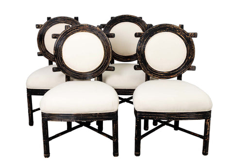 $4,200.00Set of four Hollywood regency bamboo and reed side chairs.