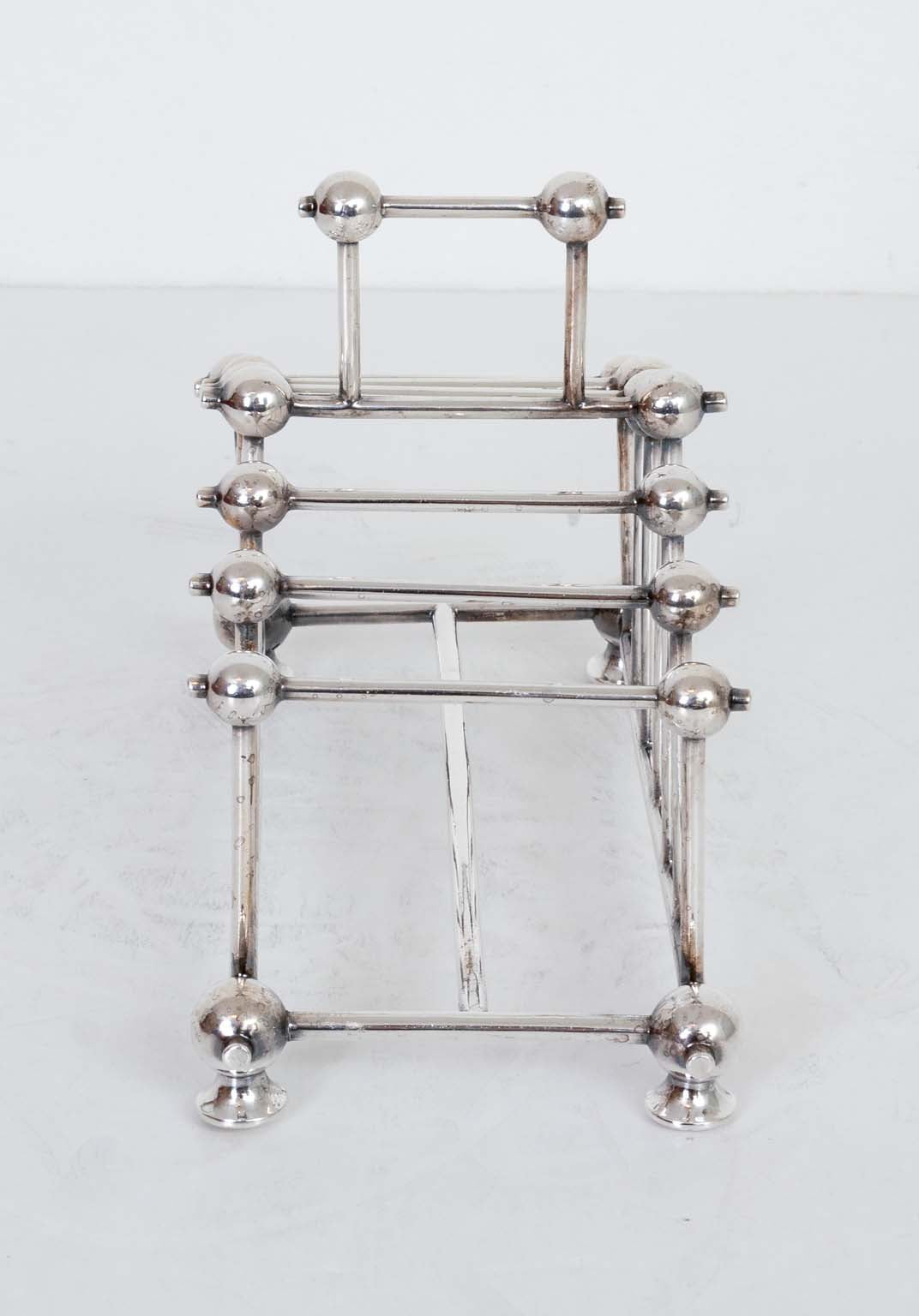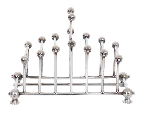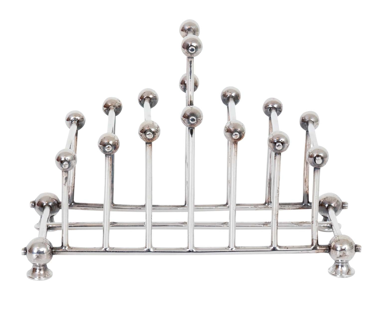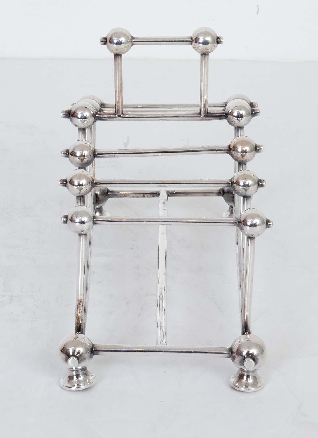 $595.00Victorian silver plate toast rack in the style of Christopher Dresser