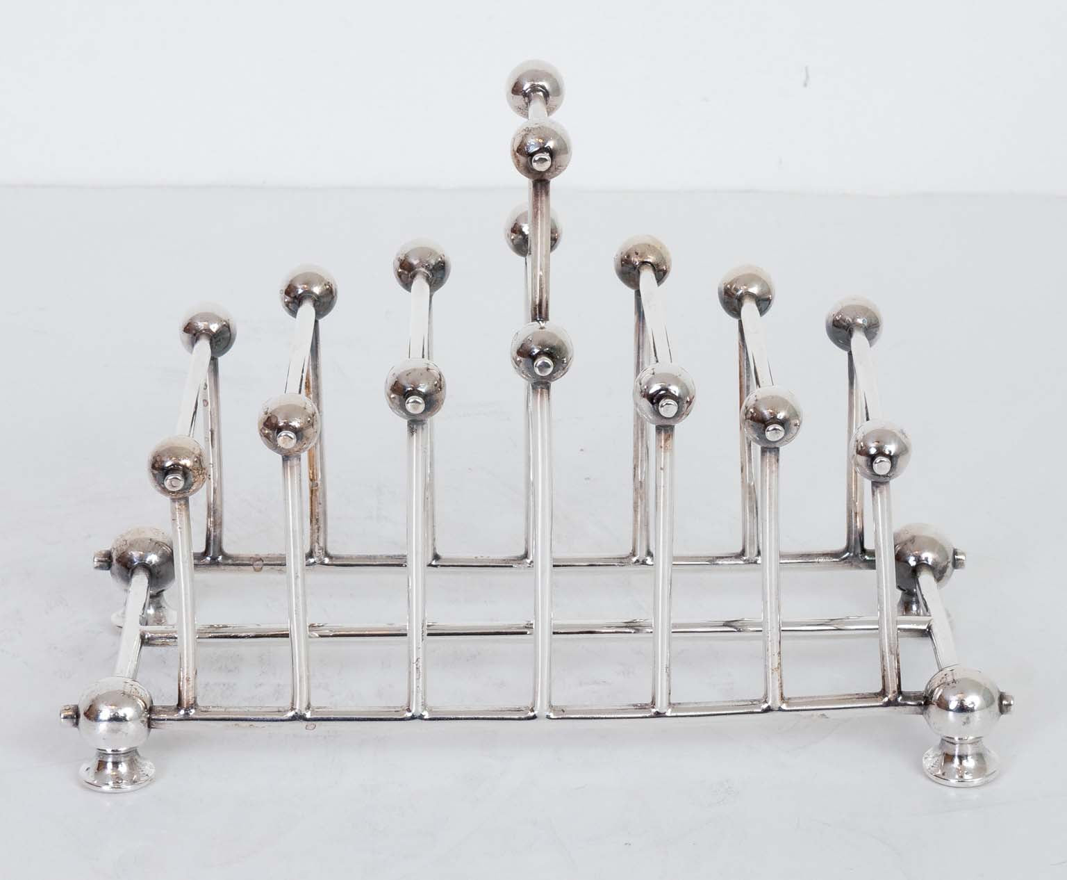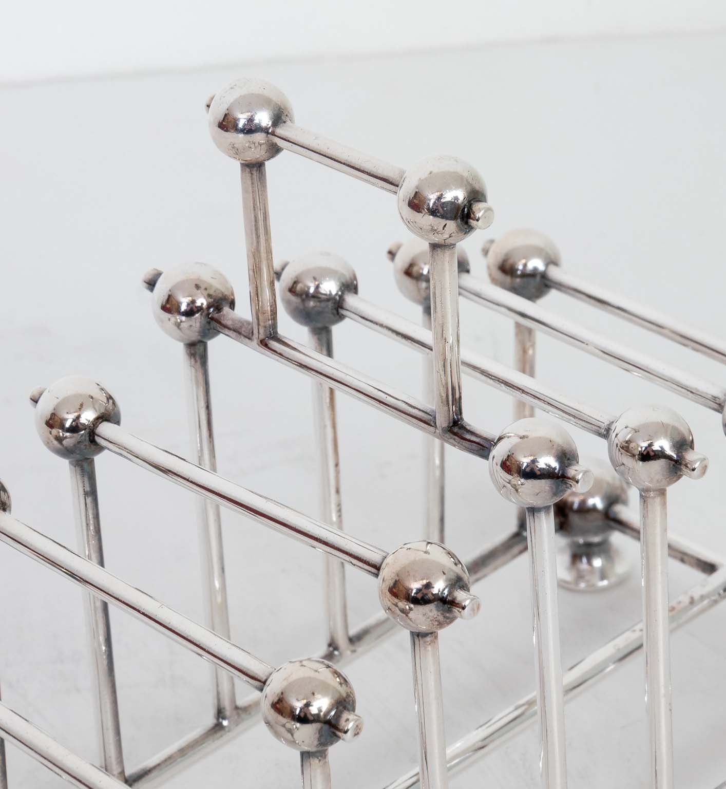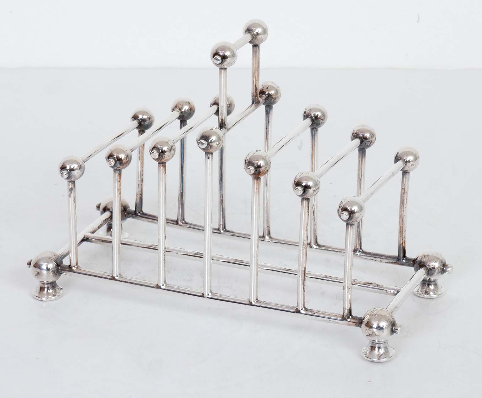 $595.00Victorian silver plate toast rack in the style of Christopher Dresser
